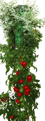 The Topsy Turvy Tomato & Herb Planter is the most exciting new invention ever for growing tomatoes and fresh herbs. That's because the Topsy Turvy is an upside down planter, where gravity forces the water and nutrients to pour directly and freely down from the root to the fruit, yielding up to 30 pounds of ripe tomatoes per plant or fresh herbs including parsley, oregano, basil, rosemary, mint and more! Simply place tomato or herb plant in the Topsy Turvy, add favorite potting soil, hang it up and water. Sun warms the plant like a greenhouse, the root system explodes and thrives inside the planter. Plus, hanging in the air eliminates any ground fungus, harmful bacteria, cutworm damage - no pesticides, digging, weeding or backbreaking work! Create fresh seasonings, homemade sauces and fun new recipes.